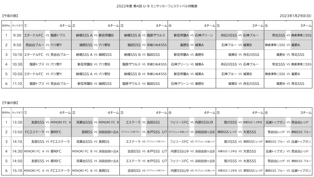 2022年度 第4回 U-9ミニサッカーフェスティバル対戦表